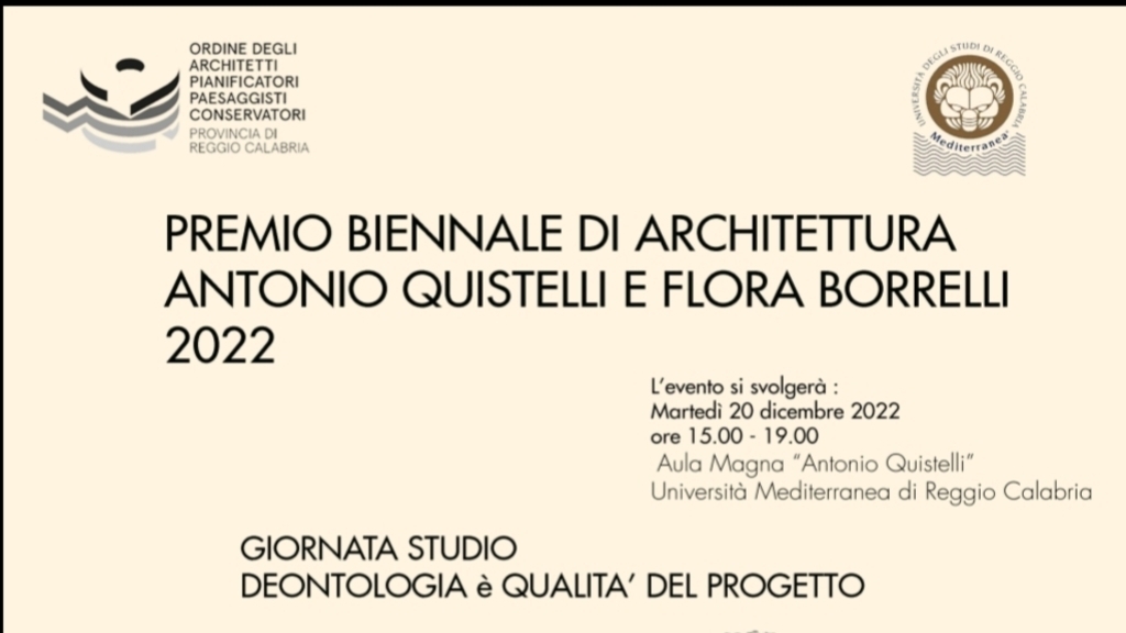 La proclamazione dei vincitori avverrà martedì 20 dicembre alle ore 15:00 presso l’Aula Magna “Ludovico Quaroni” dell’Università Mediterranea di Reggio Calabria.