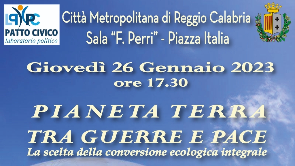 Giovedì 26 gennaio, alle ore 17,30, presso la Sala Perri della Città Metropolitana, si terrà l’incontro Pianeta terra tra guerra e pace - La scelta della conversione economica integrale.