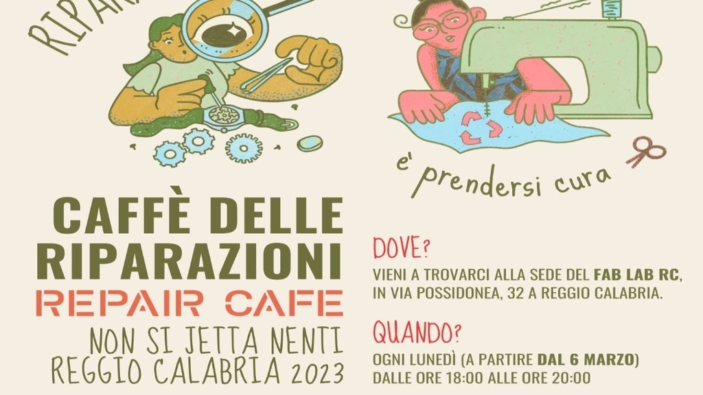 Grazie alla collaborazione con il Fab Lab di Reggio Calabria e l'associazione culturale Magnolia, questa attività continuerà anche nel 2023, e vedrà come sempre il coinvolgimento di persone, artigiani e volontari, che sono portatori di abilità e saperi, nella riparazione, assieme ai partecipanti dei loro oggetti. Grazie a questi incontri si evita la produzione di rifiuti, e quindi si riduce l’impatto economico, ambientale e sociale di un oggetto.