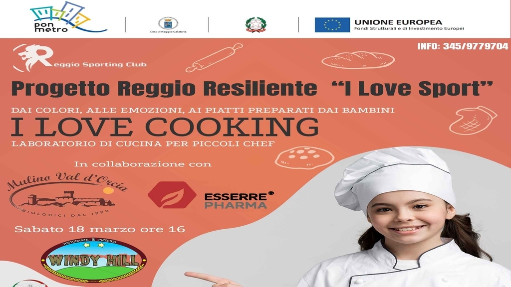 Prosegue senza sosta il Progetto Reggio Resiliente “I Love Sport”. Dopo la festa di Carnevale organizzata presso la Palestra “Boccioni” di Reggio Calabria, il nuovo incontro si svolgerà sabato 18 marzo al Ristorante Pizzeria “Windy Hill” dove i protagonisti saranno i bambini che per un giorno si vestiranno da chef.
