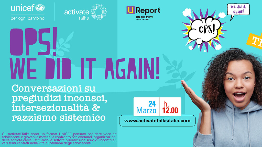 Attivazione contro il Razzismo promossa dall’Unar, con l’Activate Talk di Unicef