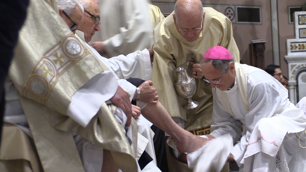 Con la Messa in Coena Domini inizia il Triduo pasquale. In Cattedrale il rito della lavanda dei piedi celebrato dal vescovo monsignor Fortunato Morrone. Ora sono i giorni della Passione, gli altari spogli, le immagini velate dai drappi scuri e le campane legate.