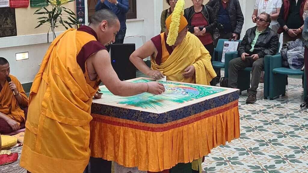 Una suggestiva ed emozionante cerimonia ha segnato la fine del tradizionale rituale del Mandala prodotto dai monaci tibetani del Monastero di Gaden Jangtse Tsawa Khangtsen