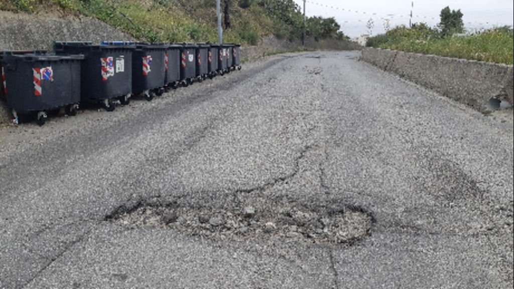 In foto un tratto del manto stradale sconnesso.