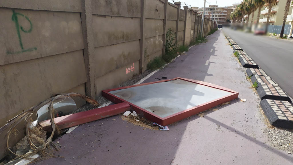 pubblicitario caduto sulla pista ciclabile in Via Padova nelle vicinanze degli uffici