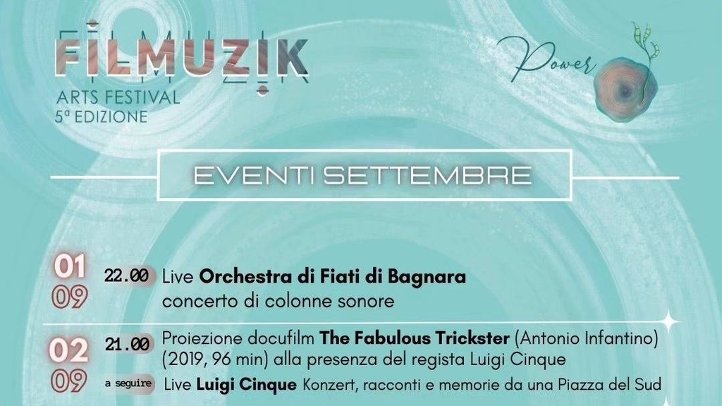 - Sabato 2 Settembre alle 21:00 verrà proiettato il docufilm “The fabulous trickster – In viaggio con Antonio Infantino” alla presenza del regista del regista Luigi Cinque. Musicista, artista, poeta, Antonio Infantino, in questo che è un film di blues mediterraneo, viene definito un Trickster, ovvero quella figura archetipica dei nativi americani, che è “colui che abita il confine”: tra il quotidiano degli uomini e il divino degli dei e dell’arte. The Fabulous Trickster permetterà a chi non lo ha conosciuto di scoprire l’arte e la magia di Antonio, che è riuscito ad essere molte cose tra le quali, un vero sciamano di collegamento tra la tradizione e il futuro. Il Sud soprattutto non può fare a meno di riconoscere una figura così importante per l'elaborazione di una propria coscienza moderna. Grande ritmo e musica d’eccezione in un film che descrive Antonio Infantino come un fondatore di “blues” nostrano e decisamente: il vero "re della taranta”. A seguire live KONZERT “Racconti e memorie di una piazza del Sud” di Luigi Cinque.