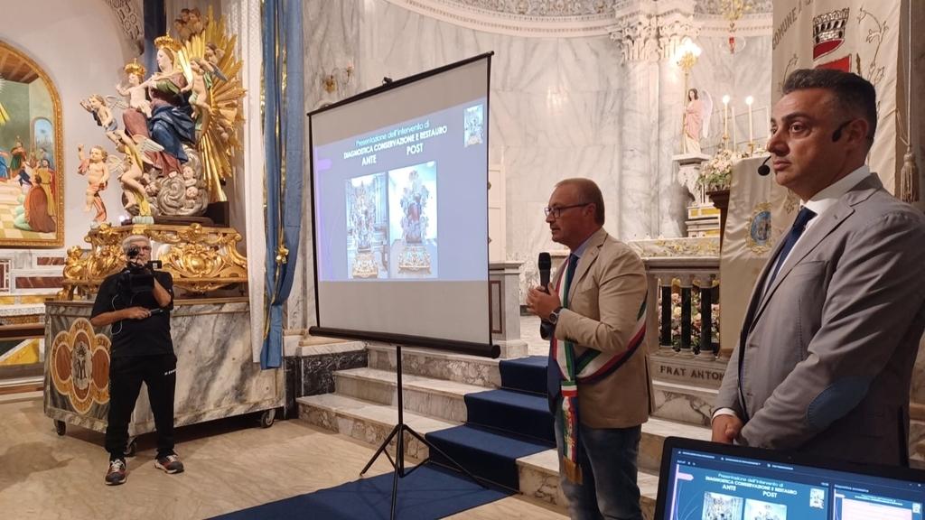 «La scultura lignea della Madonna Santissima delle Grazie torna a risplendere così come la pensò Bernardo Valentino nel 1760. Siamo molto contenti e ringraziamo il sindaco di San Giovanni di Gerace, Giovanni Pittari, la Commissione diocesana per l’arte sacra, la Soprintendenza Reggio-Vibo, il Cda del santuario maggiore e tutti i restauratori». Con queste parole, il sindaco metropolitano facente funzioni, Carmelo Versace, ha preso parte, insieme al Consigliere delegato della Metrocity Rudi Lizzi, all’ultimazione del lavoro di conservazione e restauro dell’opera custodita all’interno del santuario maggiore Madonna Santissima delle Grazie di San Giovanni di Gerace. «Sono particolarmente felice – ha aggiunto – di stare in mezzo a voi in questo che rappresenta un momento molto importante per la storia, l’identità e il sentimento della comunità intera».