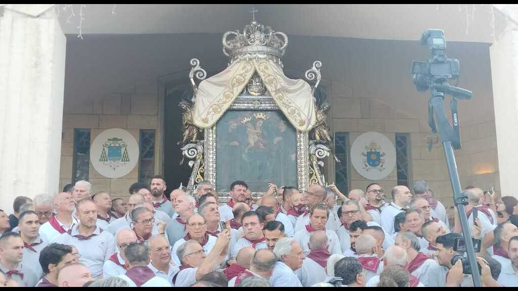 Pochi minuti fa il Quadro raffigurante Maria Madre dell Consolazione, Patrona della città di Reggio Calabria, ha lasciato l'Eremo, scortata dai portatori della vara in direzione Duomo.