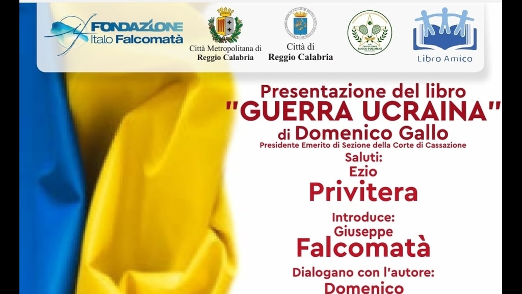 Si terrà domani venerdì 15 settembre alle 19:00 presso il circolo del tennis Rocco Polimeni di Reggio Calabria, la presentazione del libro "Guerra Ucraina" di Domenico Gallo, presidente emerito della Corte di Cassazione.