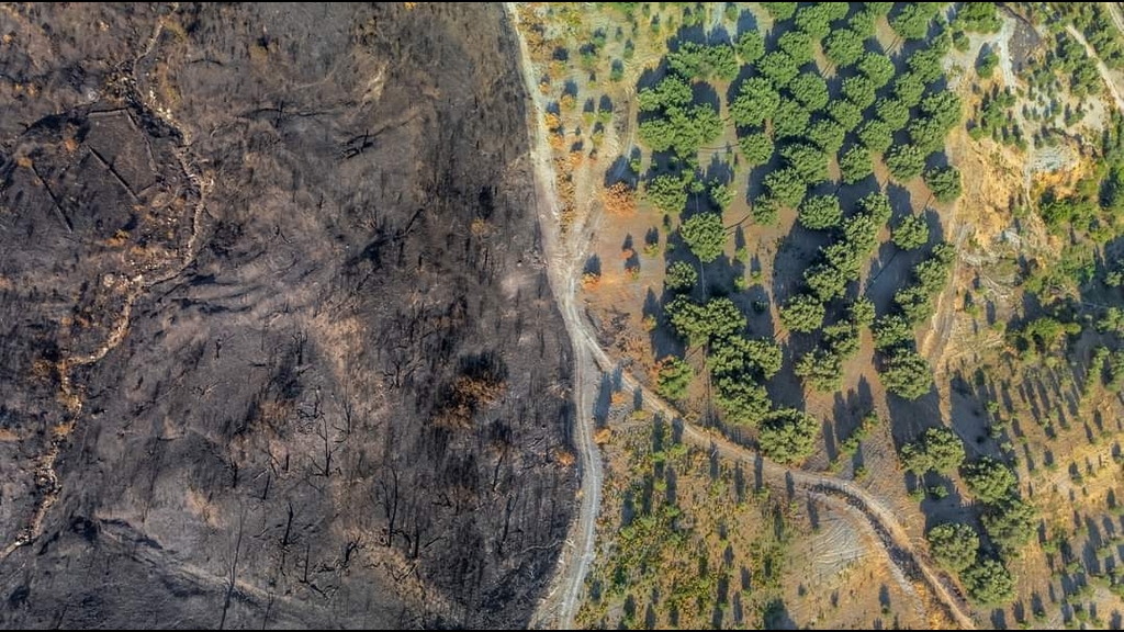 Una foto che ritrae i passaggi dell'Aspromonte devastati dagli incendi. Uno scatto di Cesare Barillà del 2021 che è stato premiato dal concorso fotografico Wiki loves earth Italy nella categoria 'paesaggi' e concorrerà rappresentando l’Italia alla fase internazionale. La dura realtà mostrata in un frame che racchiude tutto il dolore di una terra, con due opposte vedute: quella arsa, scura e quella viva e colorata.