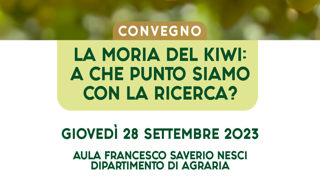 Giovedì 28 settembre 2023 alle ore 9.00, nell’Aula Seminari “Francesco Saverio Nesci” del Dipartimento di Agraria dell’Università Mediterranea di Reggio Calabria si terrà un importante Convegno dal titolo “La moria del Kiwi: a che punto siamo con la ricerca?” perfare il punto sulle conoscenze attualmente disponibili e sulle strategie di difesa efficaci, ricerca scientifica e assistenza tecnica.