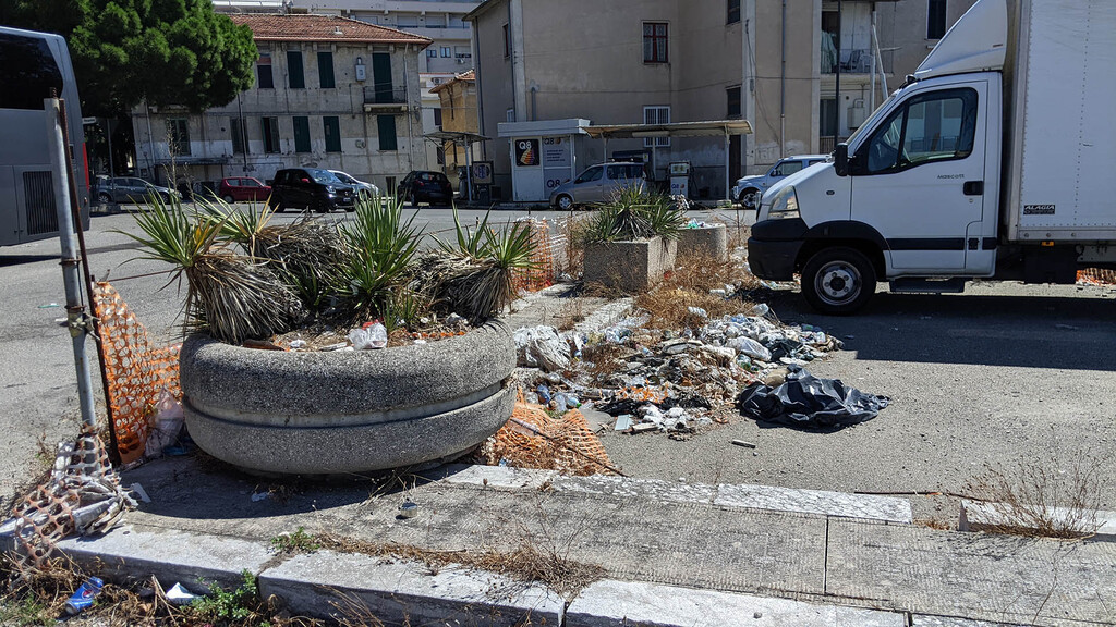 i rifiuti portati dal vento e da qualche incivile restano dentro le aiuole