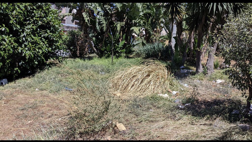 in quanto nessuno innaffia e bisogna solo sperare che piova, l'erbaccia è alta,