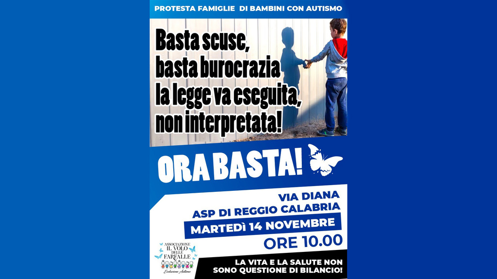 «Anticipare le spese per le cure abilitative , per le famiglie è diventato difficile se non impossibile da sostenere, poiché l'azienda sanitaria effettua i rimborsi con tempi lunghissimi, che non vanno a coprire tutte le spese anticipate. Molti genitori hanno ridotto drasticamente le ore di terapia ed alcuni hanno sospeso il trattamento». È quanto si legge in un comunicato dell'associazione "Il volo delle farfalle - Evoluzione autismo".