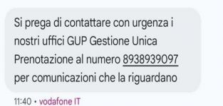 Si raccomanda di non telefonare al numero indicato nel messaggio o cliccare su link