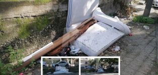 Sul tratto dedicato al vigile del fuoco Nino Candido, materassi e sacchi di spazzatura lasciati sui marciapiedi