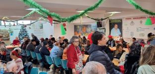 Una lunga tavolata allestita nel salone della struttura ha accolto anziani soli, famiglie in difficoltà e persone senza dimora