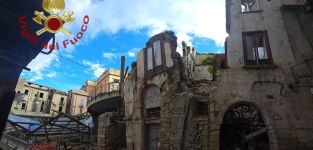 Tempestivo l'intervento dei Vigili del Fuoco a seguito della frana che ha coinvolto l'edificio sito in Vico Campagna