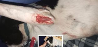Il cucciolo è stato ferito alle zampe. Dopo le cure ha ripreso a mangiare