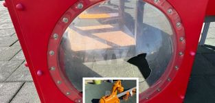 L'oblò del castello in plexiglass è stato completamente distrutto, lasciando pezzi taglienti e pericolosi per i bambini
