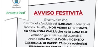 Il servizio di raccolta dei rifiuti non verrà effettuato sia nella Zona Gialla che nella Zona Blu