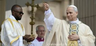 Al momento di indossare l’anello il Pontefice si è commosso ed ha rivolto lo sguardo al cielo