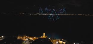 I droni volano ad un’altezza di circa 120 metri dal livello del mare e realizzeranno figure tridimensionali larghe più di 100 metri
