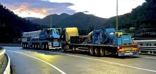 Sul posto il potente ed articolato braccio per il varo della preziosa opera terminale