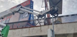 Tecnici al lavoro all’incrocio con Via Sbarre Centrali per ripristinare telecamere e sensori del sistema contro il passaggio con il rosso