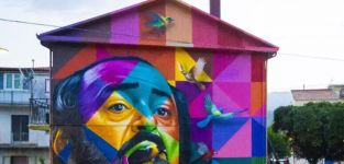 Realizzato dallo street artist brasiliano Eduardo Kobra, su una superficie di 100 metri quadri e dedicato ad uno dei miti italiani della lirica