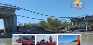 Sommozzatori e droni impegnati nelle ricerche dopo il crollo del ponte lungo la Strada Statale Adriatica