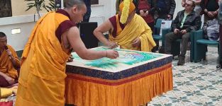 Una suggestiva ed emozionante cerimonia ha segnato la fine del tradizionale rituale del Mandala prodotto dai monaci tibetani del Monastero di Gaden Jangtse Tsawa Khangtsen