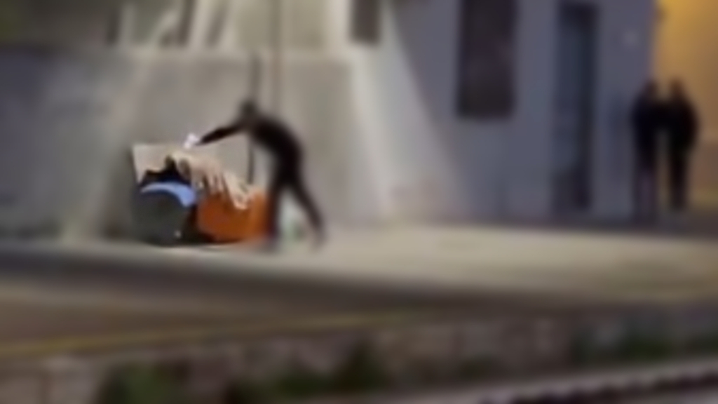 L'uomo, da quanto si può chiaramente notare dal video diffuso sul web, è stato raggiunto da tre ragazzi che lo hanno umiliato e deriso con dell'acqua gelida gettata sul corpo.