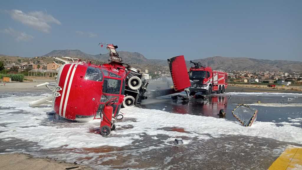 Reggio Calabria. Ha preso fuoco un elicottero dei Vigili del fuoco utilizzato per lo spegnimento degli incendi, in fase di atterraggio. Dalle prime ricostruzioni l'elicottero sarebbe stato soggetto ad un guasto presumibilmente al motore, andando a fuoco. I piloti, raggiunti nella cabina di pilotaggio con una scala in dotazione dei vigili, dopo aver divelto il cupolino con gli sganci rapidi, sono stati estratti dal velivolo e trasportati al GOM per gli accertamenti del caso, ma l'intervento immediato dei colleghi ha evitato fortunatamente il peggio. Un terzo pilota, che faceva parte dell'equipaggio, non si trovava all'interno dell'aeromobile al momento del propagarsi delle fiamme.