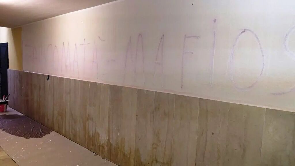 "Falcomatà Mafioso" si legge in più scritte, immediatamente coperte dagli addetti lavori che sono intervenuti nel pomeriggio.