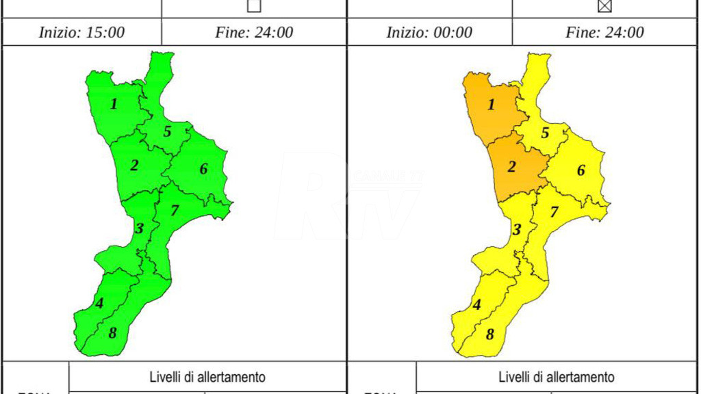 La Protezione Civile della Calabria ha aggiornato il messaggio di allerta meteo per domani, lunedì 26 settembre, innalzandolo ad “arancione” per 111 Comuni cosentino.