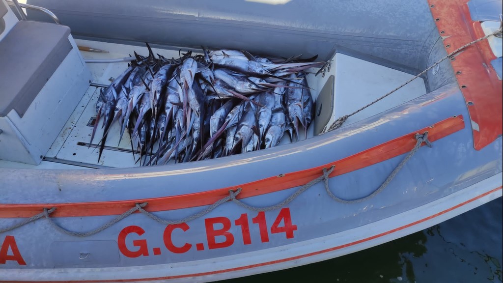 Continua incessantemente l'attività di contrasto alla pesca abusiva da parte degli uomini della Guardia Costiera di Reggio Calabria. A seguito di una mirata attività di pattugliamento lungo il litorale reggino, sono stati individuati e recuperati diversi sistemi di pesca abusivi cosiddetti “palangari derivanti” usati principalmente da pescatori sportivi per la pesca di frodo del Pesce Spada allo stadio giovanile. L'intervento ha portato al recupero e al sequestro di circa 10.000 metri di palangari e di 180 piccoli esemplari di pesce spada, di cui 97 sono stati immediatamente liberati in mare poiché ancora in vita. Gli spadini recuperati sono stati giudicati idonei al consumo umano dal personale dell’A.S.P. – Servizio veterinario di Reggio Calabria, e successivamente donati in beneficienza alla locale Caritas Diocesana. Purtroppo, si è costretti a registrare ancora una volta la totale mancanza di sensibilità di alcuni individui verso una risorsa, quella in generale della fauna marina, già notevolmente compromessa. Il pesce spada rientra tra le specie ittiche “protette” la cui cattura è sottoposta a particolari restrizioni dettate dalle vigenti normative nazionali e comunitarie. In particolare la cattura di esemplari al di sotto della taglia minima consentita, ovvero che non abbiano raggiunto l'età riproduttiva, arreca danno alle specie alterando, inoltre, l'equilibrio dell'intero ecosistema. La Guardia Costiera di Reggio Calabria continuerà, pertanto, a monitorare attentamente ed a contrastare tale fenomeno, quale impegno fattivo per la tutela della risorsa ittica e la salvaguardia dell'ambiente marino.