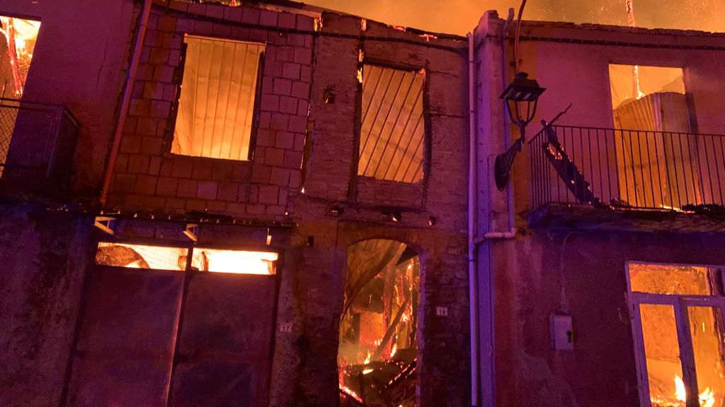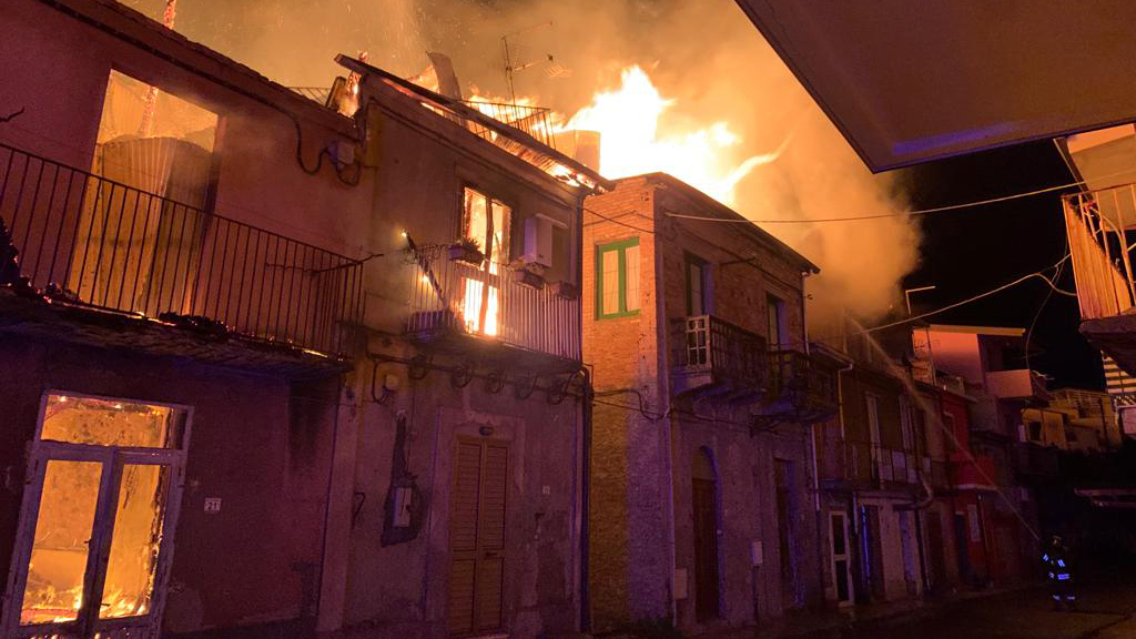 Al momento non si registrano feriti e sembrerebbe che gli edifici coinvolti siano disabitati. Anche qui, come per Sinopoli, lo scenario si è prospettato difficile a causa della tipologia delle costruzioni, risalenti alla metà del novecento e realizzate con unica struttura portante in legno comune al tutti gli edifici. Diciotto vigili del fuoco e sei automezzi è lo spiegamento di forze attualmente sul posto. Le cause dell'incendio sono ancora ignote.