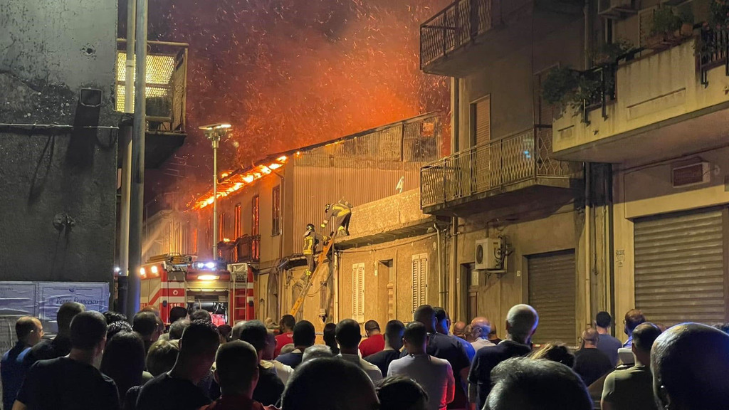 da otto immobili ed edificato nel centro abitato di Sant'Eufemia d'Aspromonte. Due autopompe, due autobotti con l'ausilio di un'autoscala stanno