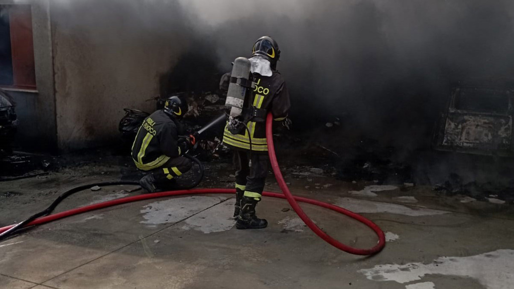 automezzi, a causa di un incendio sviluppatosi all'interno di un deposito