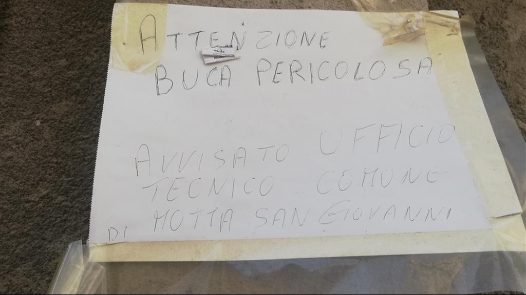 Nella mattinata dello scorso 19 ottobre mi sono recato sul posto e ho riscontrato quanto rappresentatomi rilevando che il tratto viario in questione presenta un livello di severità alto giacché "a colpo d'occhio” è possibile vedere che in quel tratto sotto il manto stradale si è creato un vuoto e con il transito dei veicoli è alta la probabilità che si concretizzi il cedimento del tratto viario degradato.