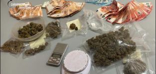 Nel suo appartamento rinvenuti marijuana, hashish e cocaina nonché diverse migliaia di euro in contanti
